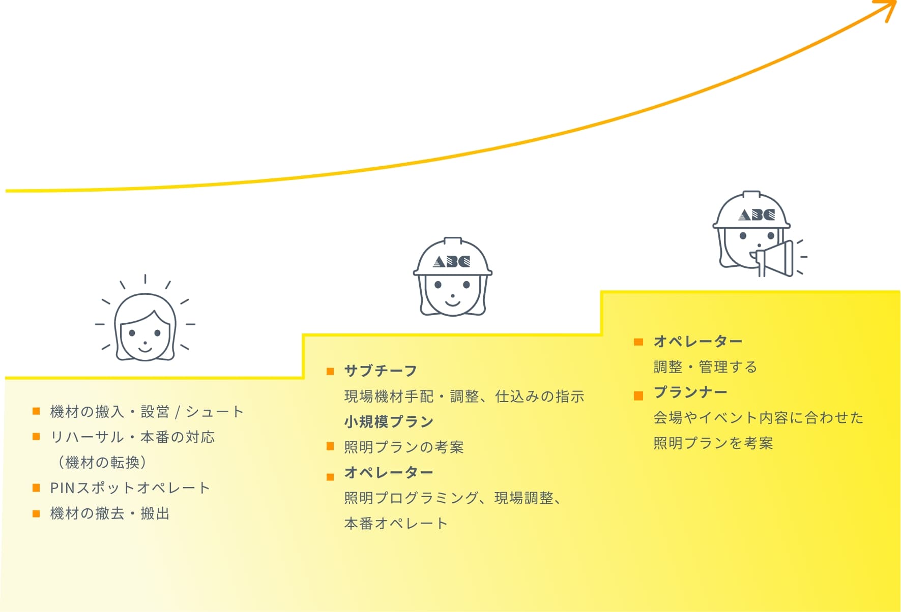実際に全身で操作するピンスポットなどは臨機応変にステージに対応することが求められます。